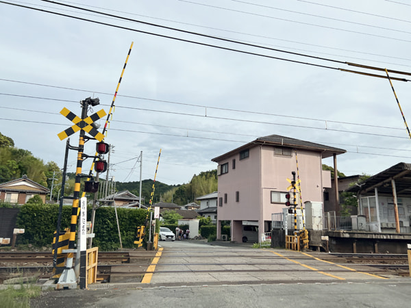④踏切を越えて道なりに進む